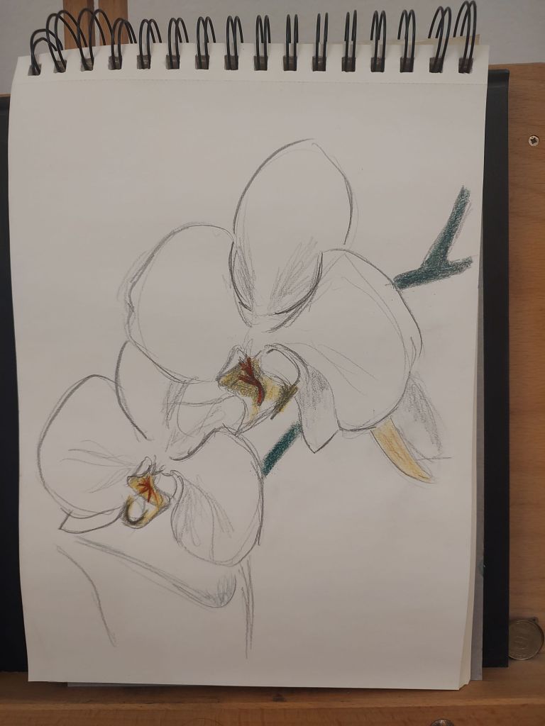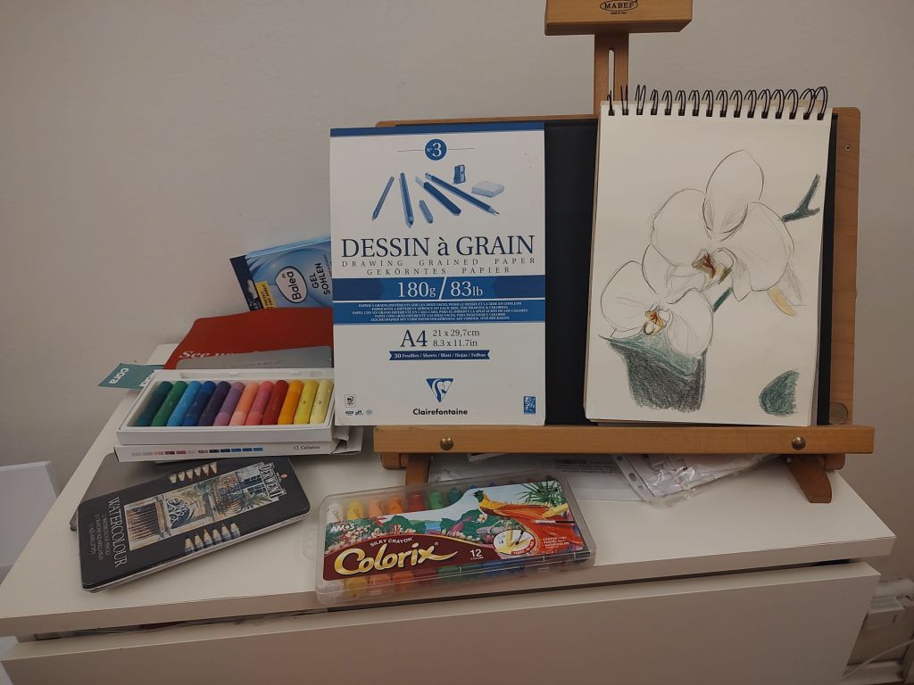 A couple of years ago I was given some crayons. They have been staring at me from the little corner of the room where I set up an easel and some other materials in the hopes that I might learn to draw “properly” at some point. Even signed up for a Udemy class and everything (yes, I believe it was the height of the pandemic).