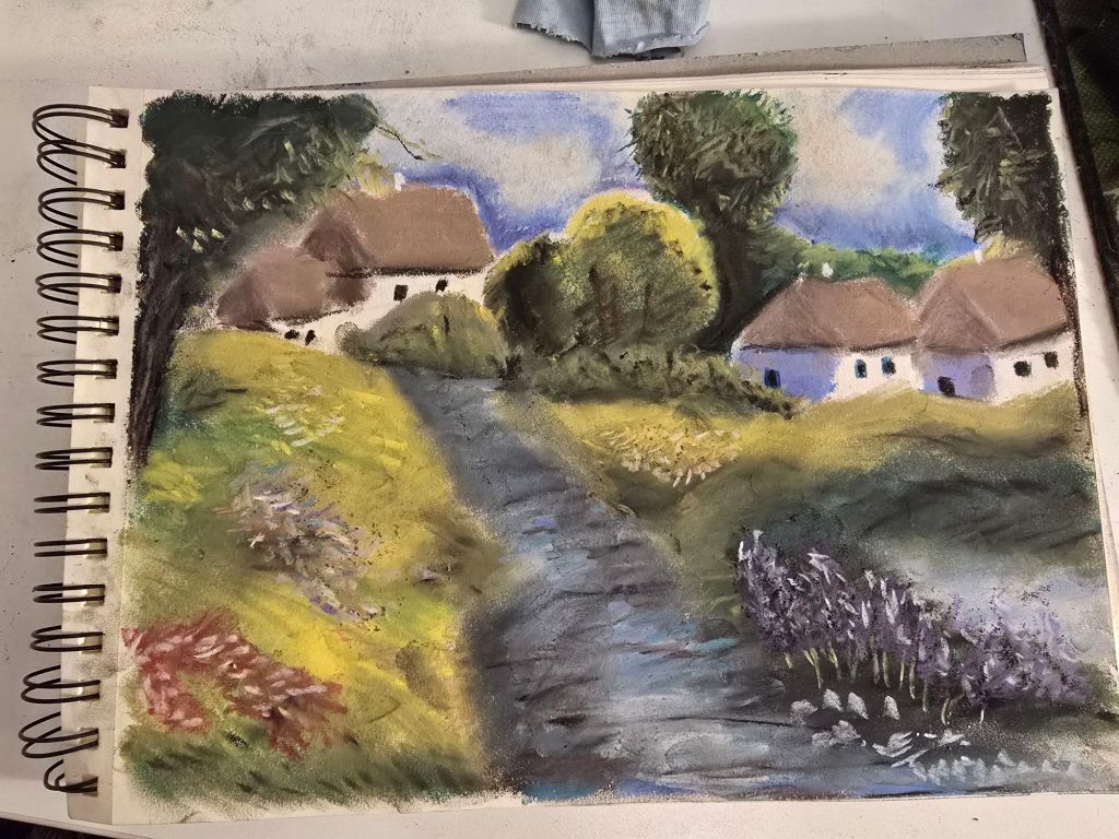I found some pastels that moved with me to Romania for some unknown reason and decided to go full Bob Ross. Watched a few videos on YouTube on how to use soft pastels (did you know you can learn pretty much anything on YouTube? I mean, I knew that, I just haven’t quite put that to the test before this month when I suddenly decided to make my dopamine monkey happy via instant artistic success), then found a full blown landscape tutorial and thought “fuck it, I’m having fun today and turning my brain completely off”.